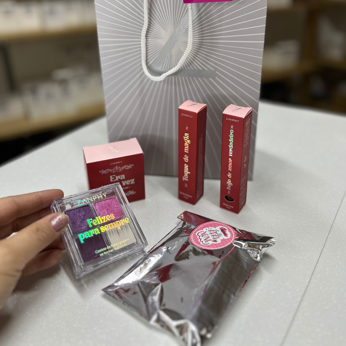 Uma seleção luxuosa de produtos de maquiagem que irão realçar a beleza e proporcionar um look deslumbrante para essa ocasião especial. O Kit "Glamour" oferece versatilidade (produtos multifuncionais que permitem criar diversos looks glamourosos e românticos) e qualidade Zanphy (fórmulas de alta qualidade que garantem longa duração e um acabamento impecável), é o presente ideal para o Dia dos Namorados.
